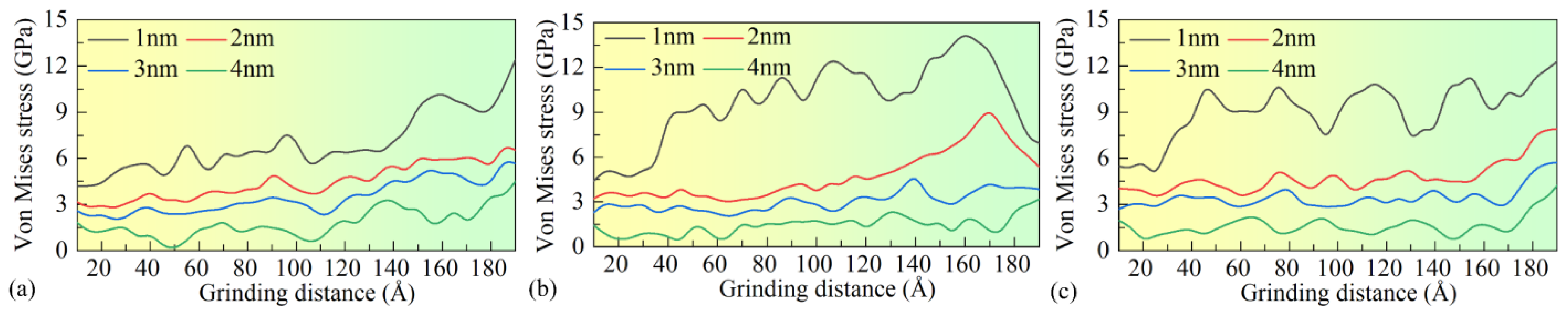 Nano-grinding depth (nm) | 1, 2, 3, 4 |