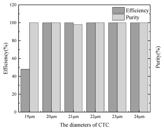The efficiency and purity of various simulation tests for different CTCs with various diameters.