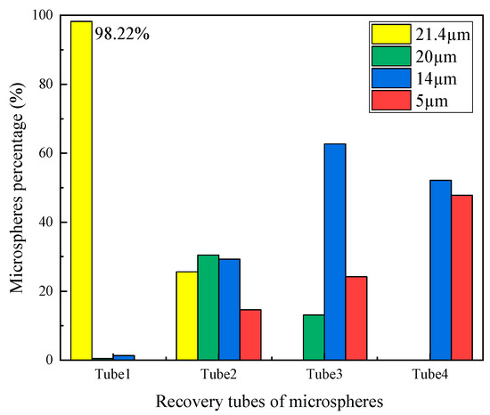 The percentage of various microspheres in different recovery tubes by fluorescence determination.