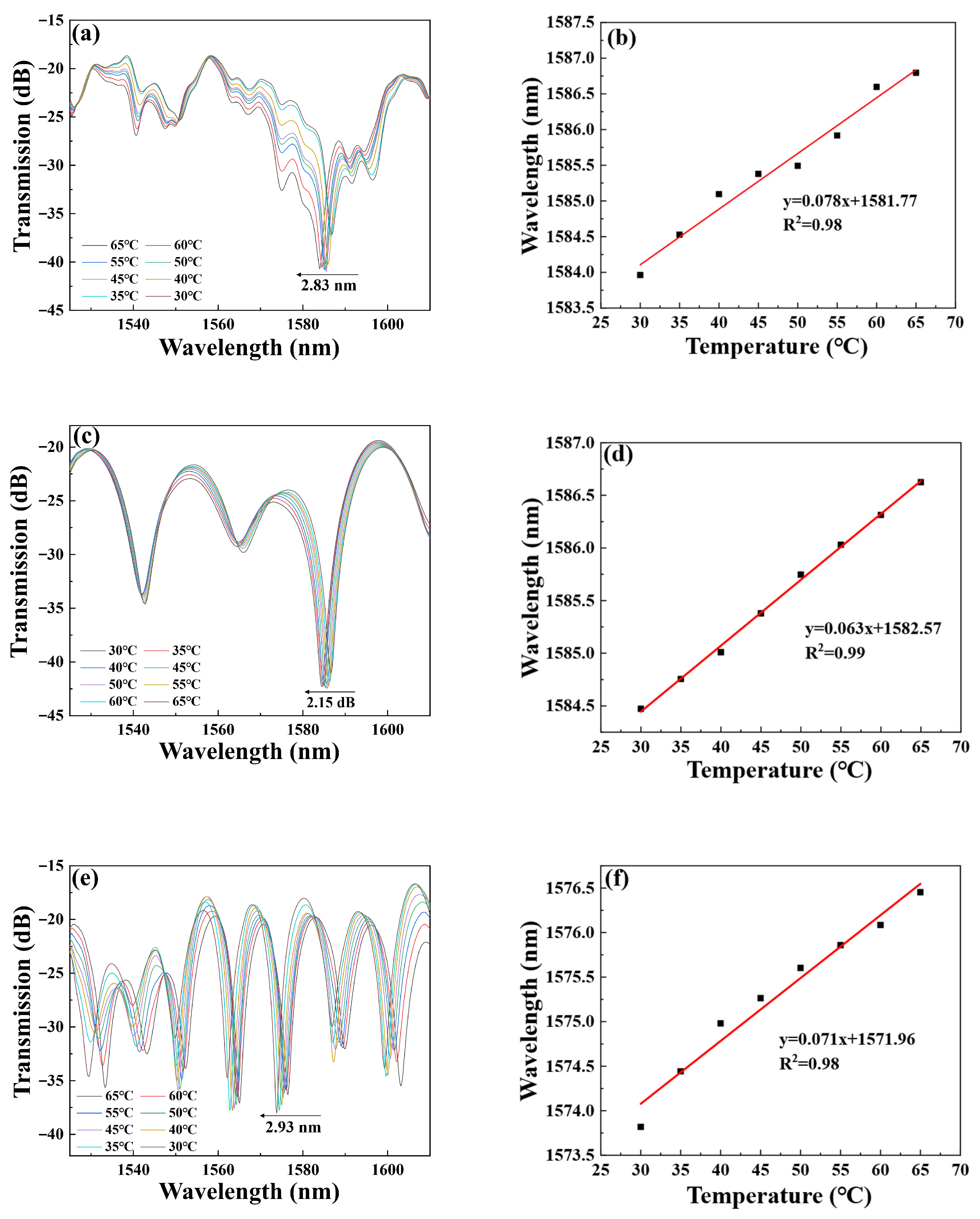 - Wang, Z.R.; Huang, L.; Liu, C. Sensitivity-enhanced fiber temperature sensor based on Vernier effect and dual in-line Mach-Zehnder interferometers. IEEE Sens. J. 2019, 19, 7983–7987. [Google Scholar] [CrossRef]