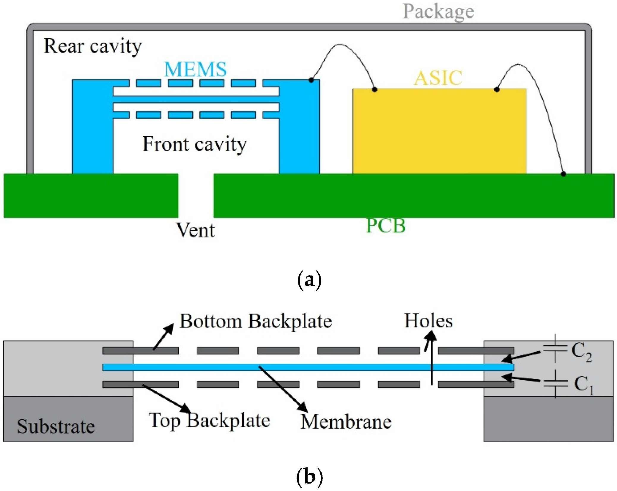 - Sun, C.; Sang, J.; Duanmu, Z.; Liu, B.; Li, X. Sensitivity analysis for dual-membrane capacitive MEMS microphone. IEEE Sens. J. 2024, 24, 24. [Google Scholar] [CrossRef]