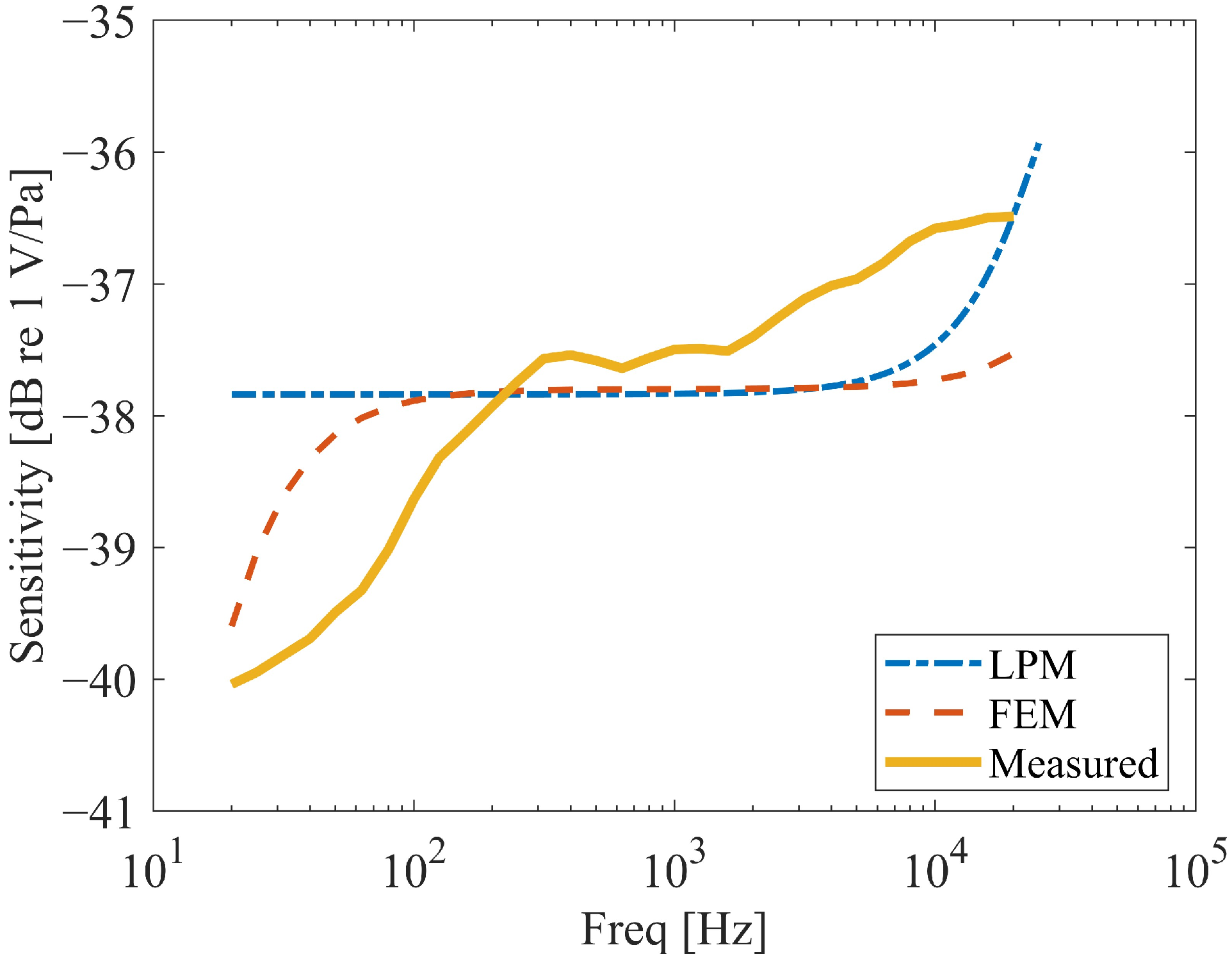- Esteves, J.; Rufer, L.; Ekeom, D.; Basrour, S. Lumped-parameters equivalent circuit for condenser microphones modeling. J. Acoust. Soc. Am. 2017, 142, 2121–2132. [Google Scholar] [CrossRef] [PubMed]