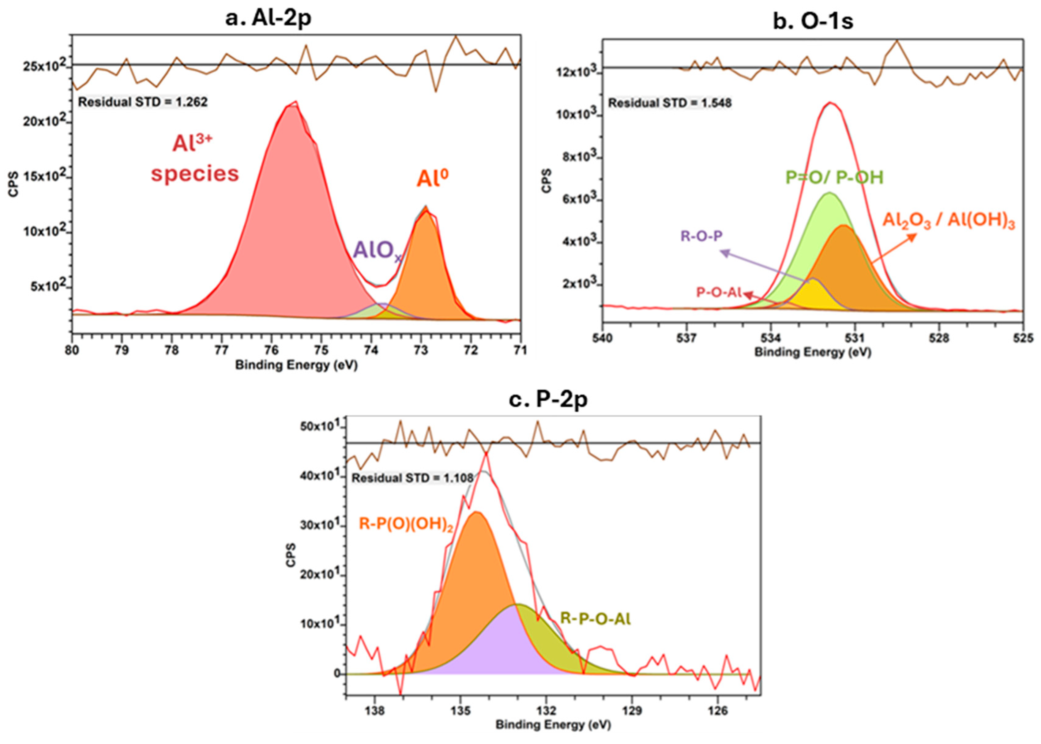 - Zhao, R.; Hauert, R.; Crockett, R.; Cancellieri, C.; Gaan, S.; Schmutz, P.; Heuberger, M.; Jeurgens, L.P.H. Aqueous phosphonic acid treatments of aluminium: Effect of oxide dissolution and re-oxidation on adsorbate formation. Appl. Surf. Sci. 2024, 667, 160363. [Google Scholar] [CrossRef]