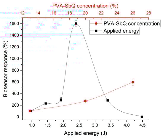 Dependence of the POx-based biosensor responses on irradiation intensity and PVA-SbQ concentration.