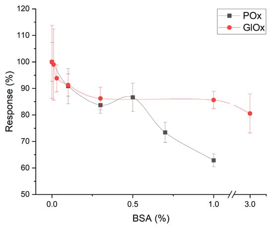 Influence of protein on the response magnitude of POx- and GlOx-based biosensors.