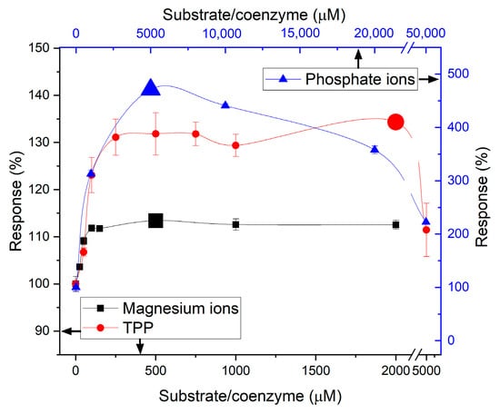 Dependence of the POx-based biosensor responses on phosphate ions, magnesium ions, and thiamine pyrophosphate (TPP) concentrations.