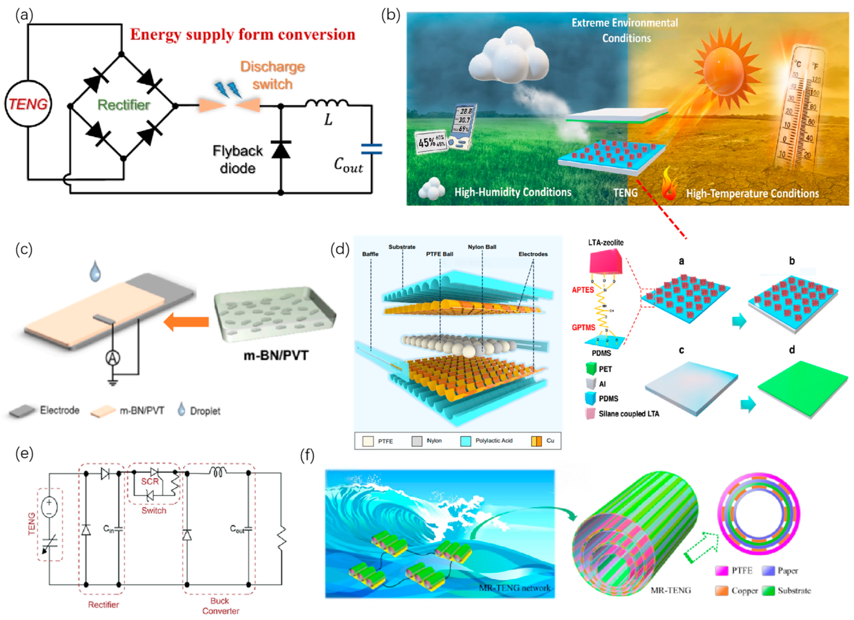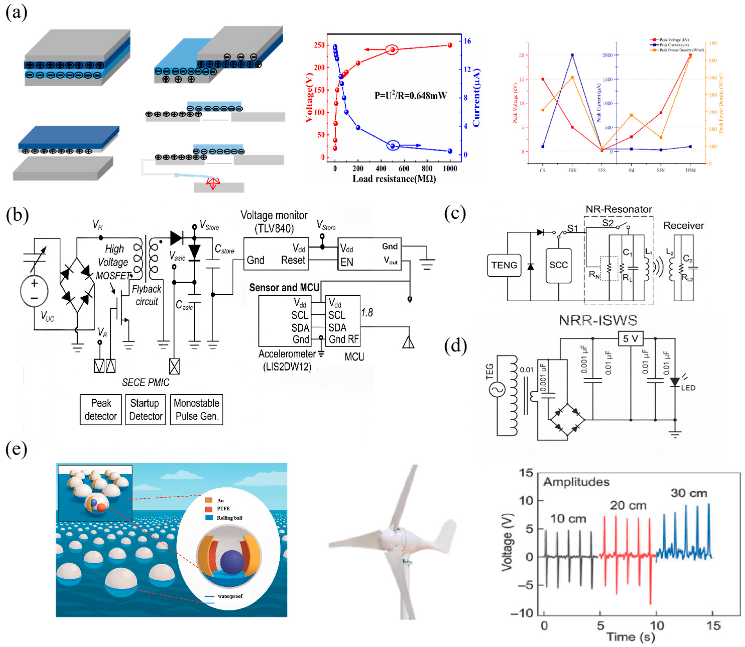 However, only a few review studies have focused on TENGs in the context of energy storage and power management. In this paper, we systematically summarize key advances in TENG-based energy storage, power management, and representative applications; analyze the technological bottlenecks and outline future research directions; and provide theoretical guidance for the engineering implementation.