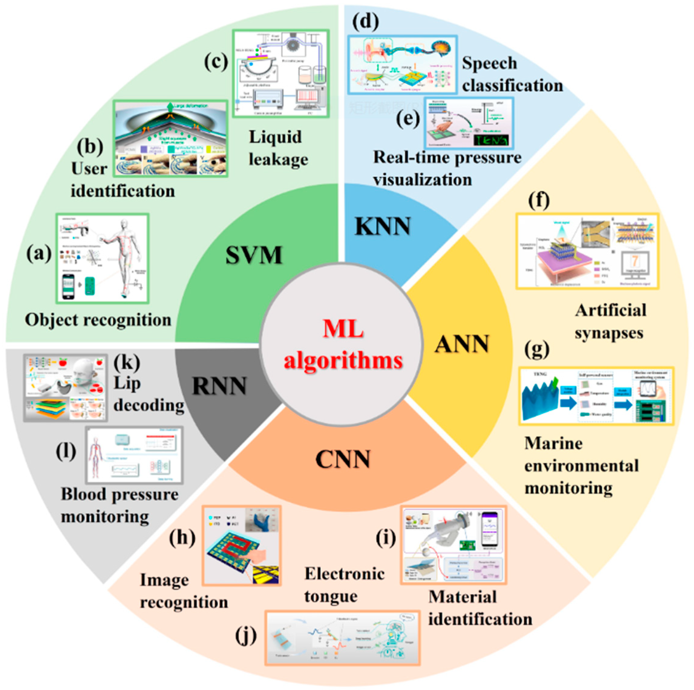- Li, R.; Wei, D.; Wang, Z. Synergizing machine learning algorithm with triboelectric nanogenerators for advanced self-powered sensing systems. Nanomaterials 2024, 14, 165. [Google Scholar] [CrossRef]