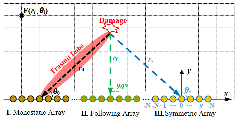 - Lang, Y.F.; Yang, Z.B.; Yang, L.H.; Chen, X.F. Lamb Wave Frequency Diverse Array. IEEE Trans. Ultrason. Ferroelectr. Freq. Control 2022, 69, 2526–2539. [Google Scholar] [PubMed]