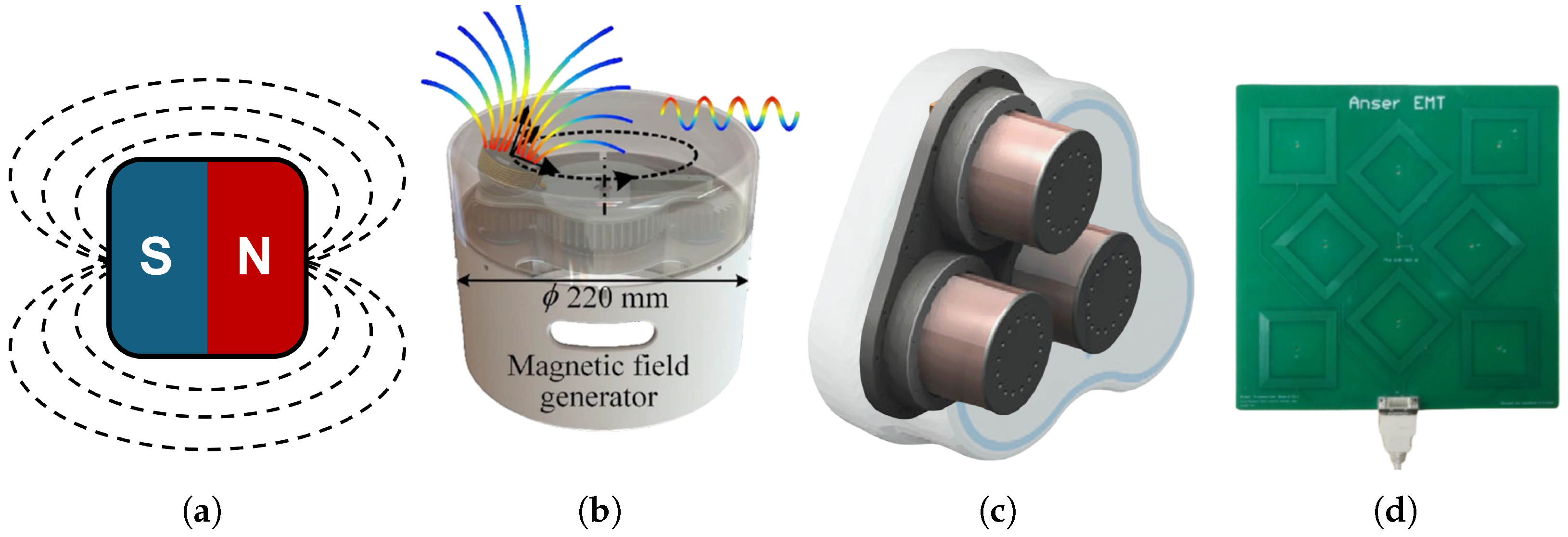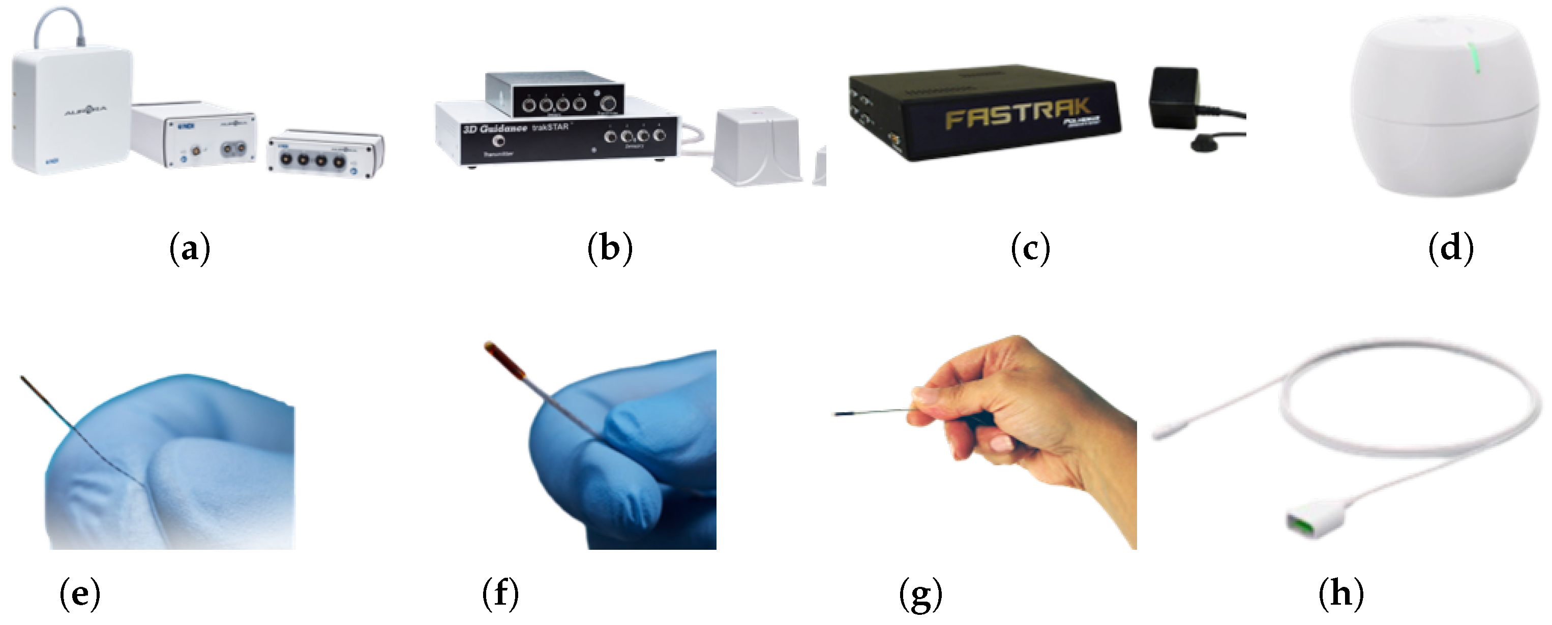 - Franz, A.M.; Haidegger, T.; Birkfellner, W.; Cleary, K.; Peters, T.M.; Maier-Hein, L. Electromagnetic Tracking in Medicine—A Review of Technology, Validation, and Applications. IEEE Trans. Med. Imaging 2014, 33, 1702–1725. [Google Scholar] [CrossRef]
