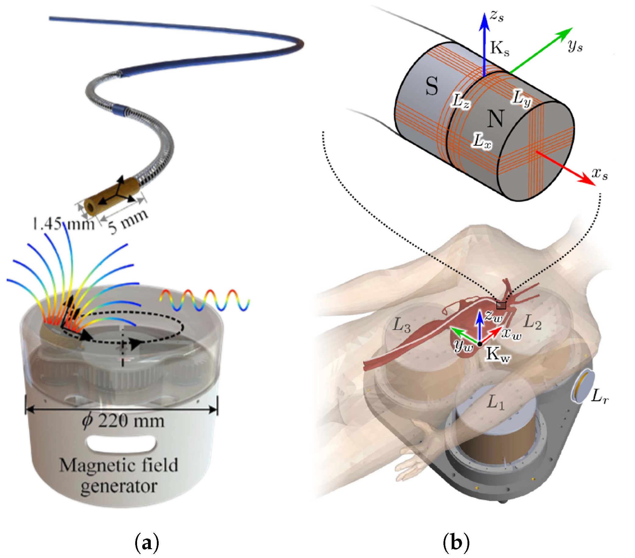 - Fischer, C.; Boehler, Q.; Nelson, B.J. Using Magnetic Fields to Navigate and Simultaneously Localize Catheters in Endoluminal Environments. IEEE Robot. Autom. Lett. 2022, 7, 7217–7223. [Google Scholar] [CrossRef]