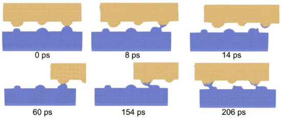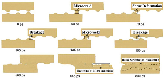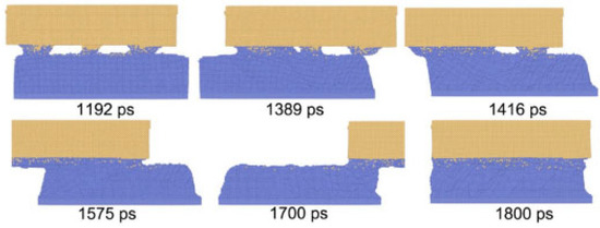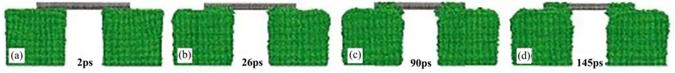 This comprehensive review has synthesized the molecular dynamics (MD) simulation research in the field of metal ultrasonic welding. Through a detailed examination of the literature, we have delved into the core theoretical issues, demonstrating that MD simulations provide an indispensable atomic-scale perspective on the complex physical mechanisms governing the process. Key insights revealed through this review include the critical roles of atomic diffusion, dislocation dynamics, grain boundary interactions, and the acoustic softening effect in determining weld formation and quality. Furthermore, the review has systematically analyzed how MD simulations elucidate the influence of crucial factors such as grain boundaries, temperature, surface morphology, time, and displacement rate on the welding outcome.