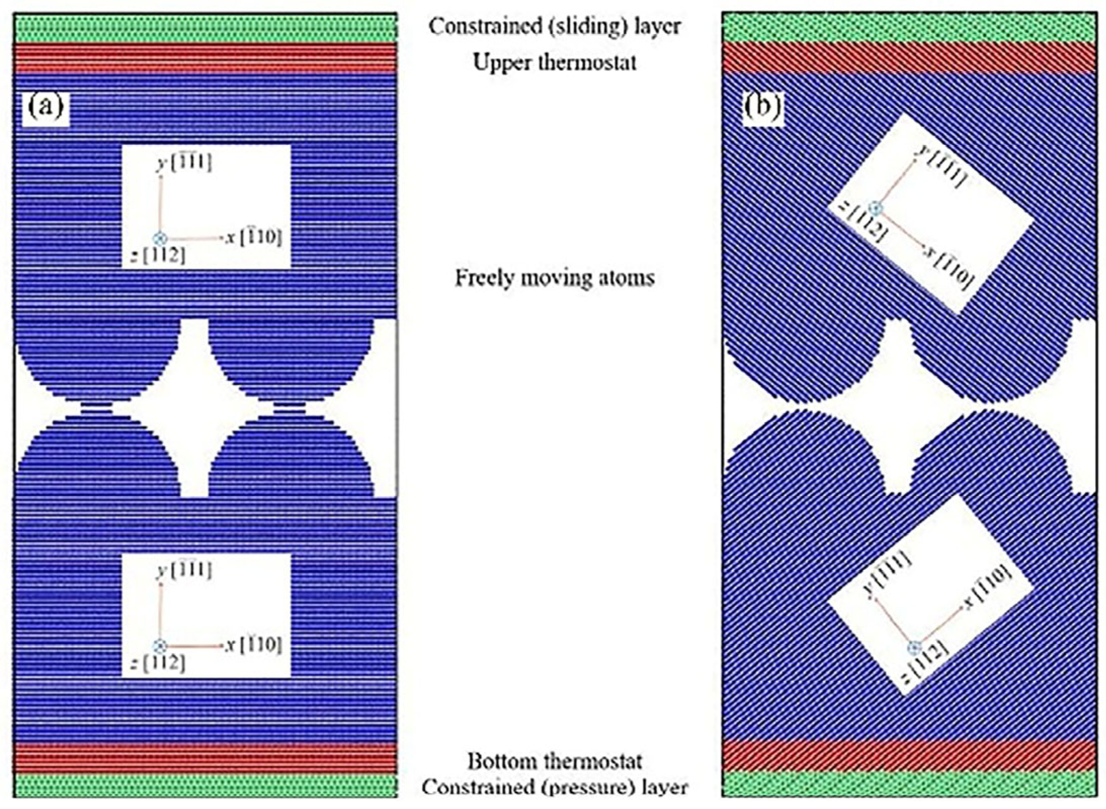 Common molecular dynamics software includes LAMMPS and GROMACS. LAMMPS, with its robust parallel computing capabilities, is particularly suitable for simulating large-scale systems. Among the commonly used MD software, LAMMPS (Large-scale Atomic/Molecular Massively Parallel Simulator) is highly regarded for its excellent parallel computing efficiency and flexibility, making it particularly suitable for simulating large-scale metallic and alloy systems. GROMACS, on the other hand, is optimized for biomolecular systems and soft matter, offering high performance in simulating proteins, lipids, and polymers, though it can also handle simpler material systems. When dealing with complex ultrasonic welding systems involving multiple materials or numerous atoms, LAMMPS demonstrates efficient computational performance. GROMACS is primarily used for simulating biomolecules and soft matter systems, though it can also handle simple material systems. This study focuses on plastic welding, emphasizing intermolecular interactions, and dynamic processes.