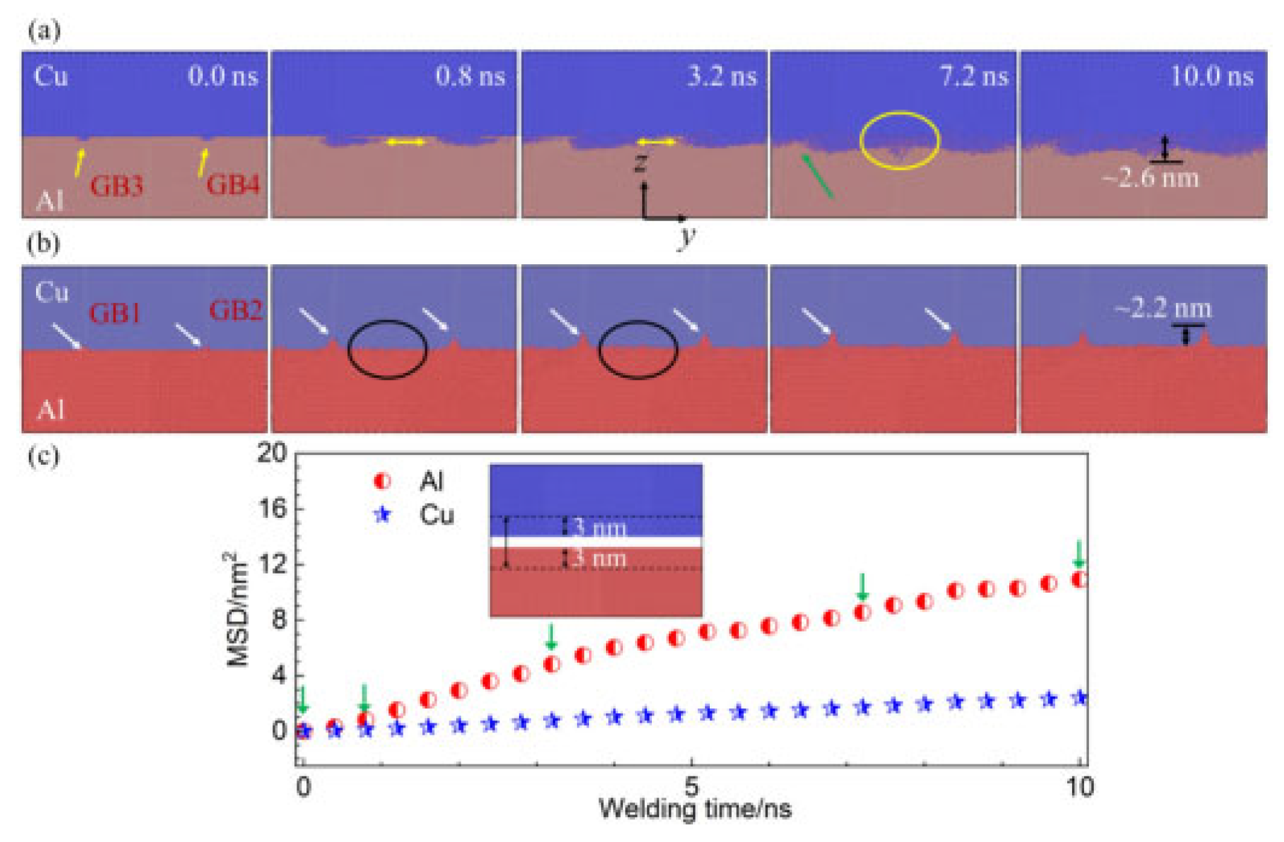 With the rapid advancements in material bonding technologies, welding has emerged as a pivotal connection method, playing a vital role across multiple industries, including electronics, automotive, and aerospace. Ultrasonic welding technology has gained prominence as a research focus due to its efficiency, energy efficiency, and environmental benefits. However, the welding process involves complex physical and mechanical phenomena, particularly at the atomic and microscopic scales. Critical challenges such as material diffusion behavior, interface structure evolution, and factors affecting welding quality have become key constraints hindering the further development and practical application of this technology.