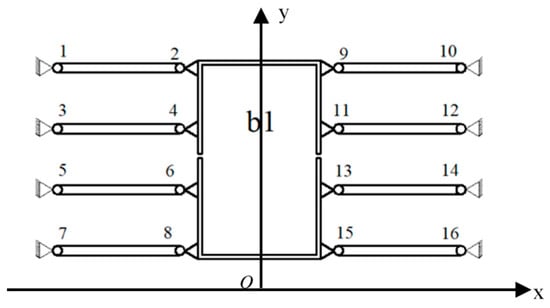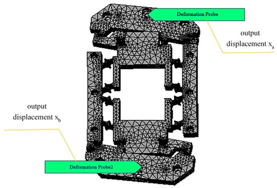 The principle of balancing additional force is shown in Figure 1. The micro-driver is fixedly connected to b1, and the mechanism is symmetrically designed with eight flexible hinge components (flexible hinges 1–16). When the driver produces a drive displacement, the flexible hinge will be deformed. In addition to the force of the main direction of motion, forces in non-directions of motion are generated. At this time, the eight symmetrically distributed flexible hinge components have equal magnitude and opposite directions of force in the non-moving directions due to deformation, and the transverse forces from both directions can be balanced to achieve the additional force balance of the flexure hinge. Detailed principles can be found in reference [37] published by our research group.
