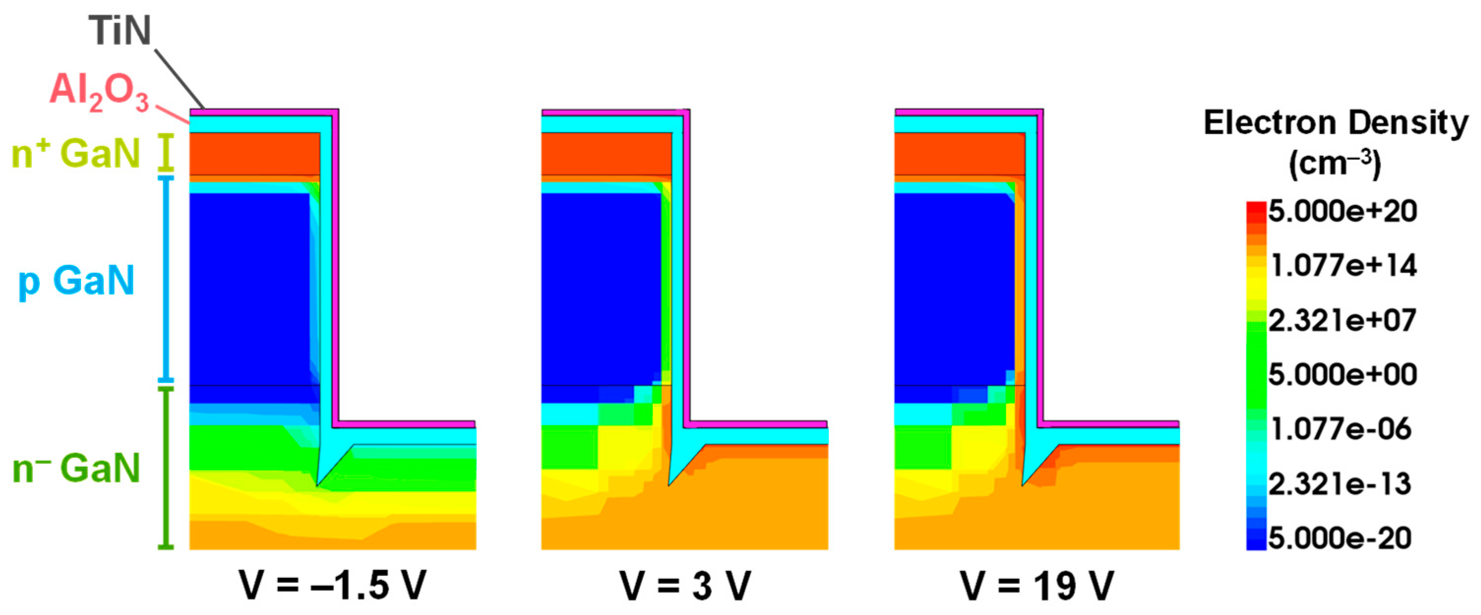 - Zhang, Y.; Sun, M.; Liu, Z.; Piedra, D.; Hu, J.; Gao, X.; Palacios, T. Trench Formation and Corner Rounding in Vertical GaN Power Devices. Appl. Phys. Lett. 2017, 110, 193506. [Google Scholar] [CrossRef]