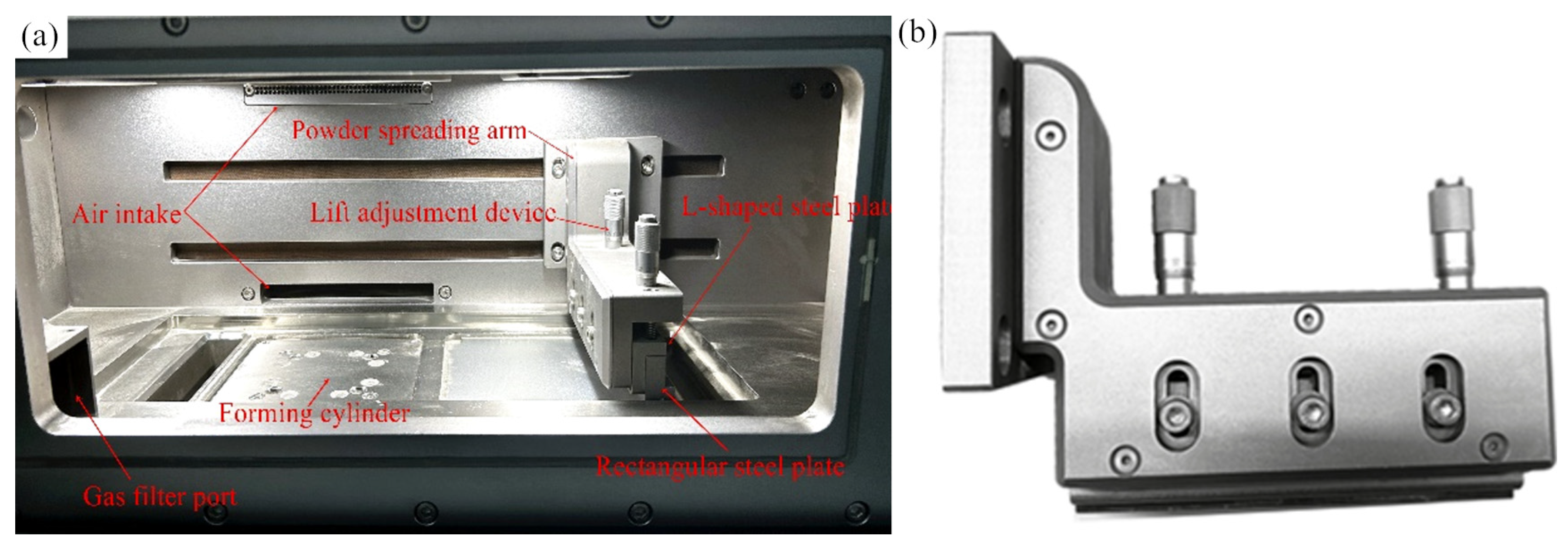 - Yinghua, A. 3d Printing Powder Spreading Device; Chongqing Anderuiyuan Technology Co., Ltd.: Chongqing, China, 2020. [Google Scholar]