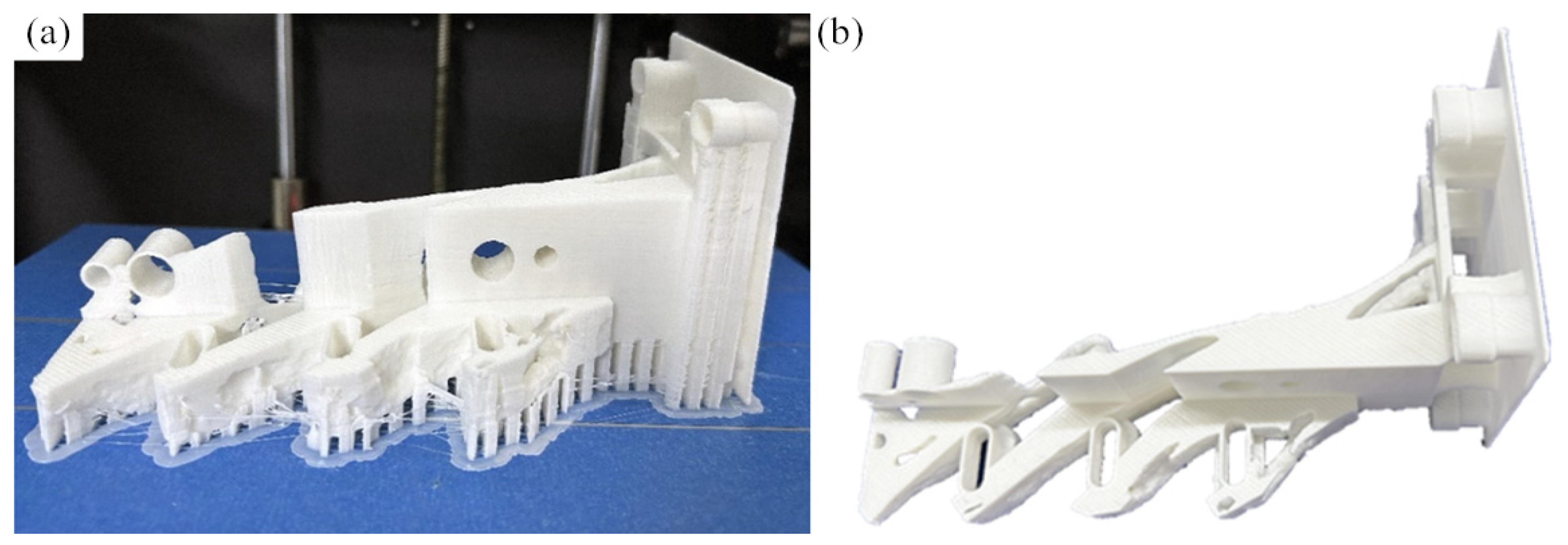 - The 3D-printed powder arm parts have a smooth surface, low roughness, no obvious slag hanging on the overhanging surface, and no obvious warping or deformation. The parts have a high surface finish after post-processing and good structural connections, and they can be used in actual assembly inspections. The fit between the 3D-printed powder arm and the assembly wall is tight, the screw hole positions are appropriate, and there are no apparent assembly conflicts between the components.