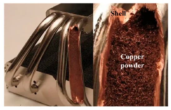 - Mansouri, N.; Zaghlol, A.; Weasner, C. Force Convection Performance of the Heat Sink with Embedded Heat Pipes Comparing Two Embedding Technologies for Heat Pipes. In Proceedings of the 2020 19th IEEE Intersociety Conference on Thermal and Thermomechanical Phenomena in Electronic Systems (ITherm), Orlando, FL, USA, 21–23 July 2020; pp. 8–14. [Google Scholar]
