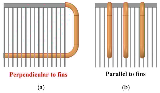- Direction: Direction here refers to the positional relationship between the heat pipe and the heatsink’s fins. The first positional relationship is that the heat pipe is perpendicular to the fins. Another positional relationship is that the heat pipe is parallel to the fins. Moreover, the direction of the straight heat pipe has little effect on heat flux reconstruction.