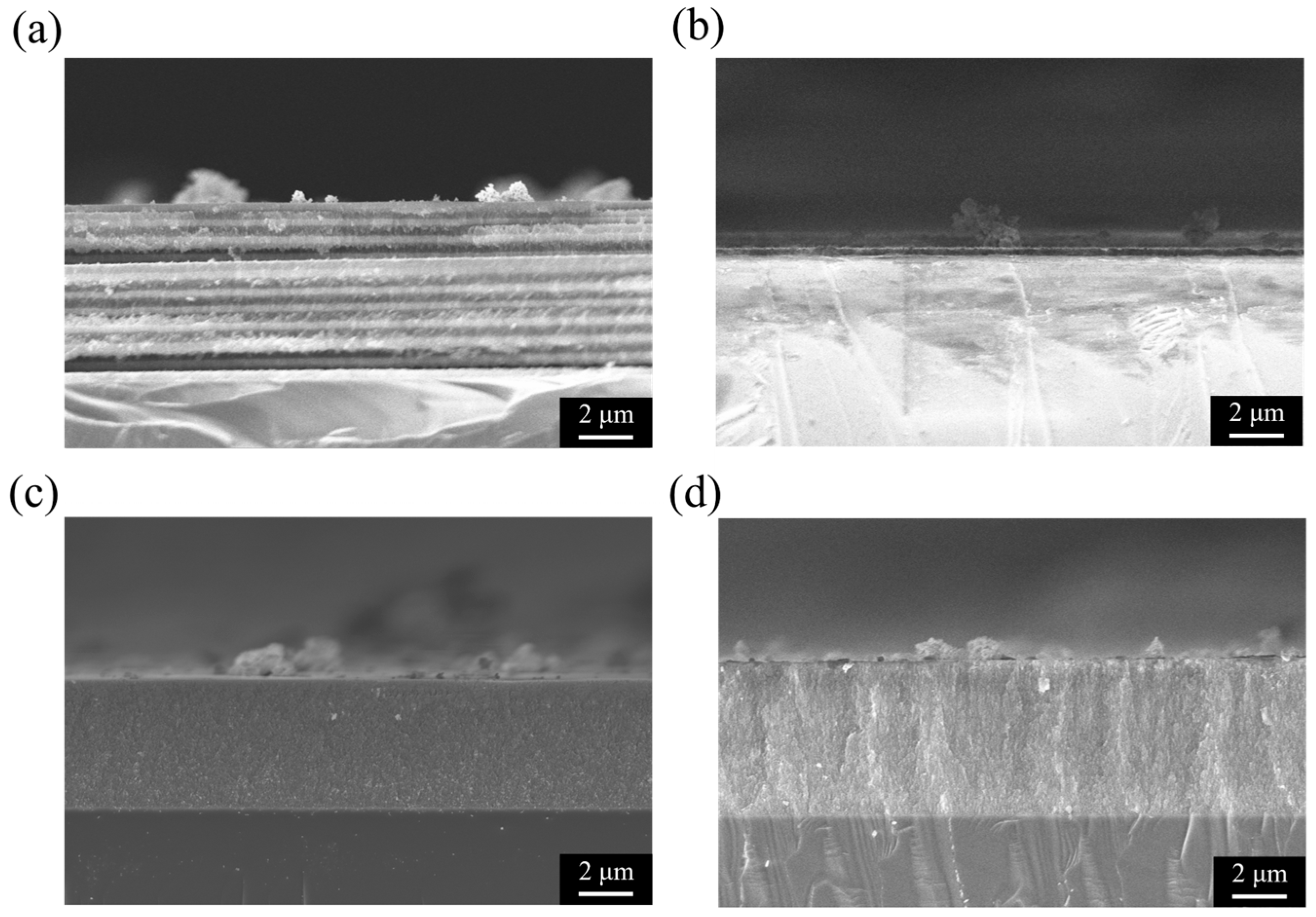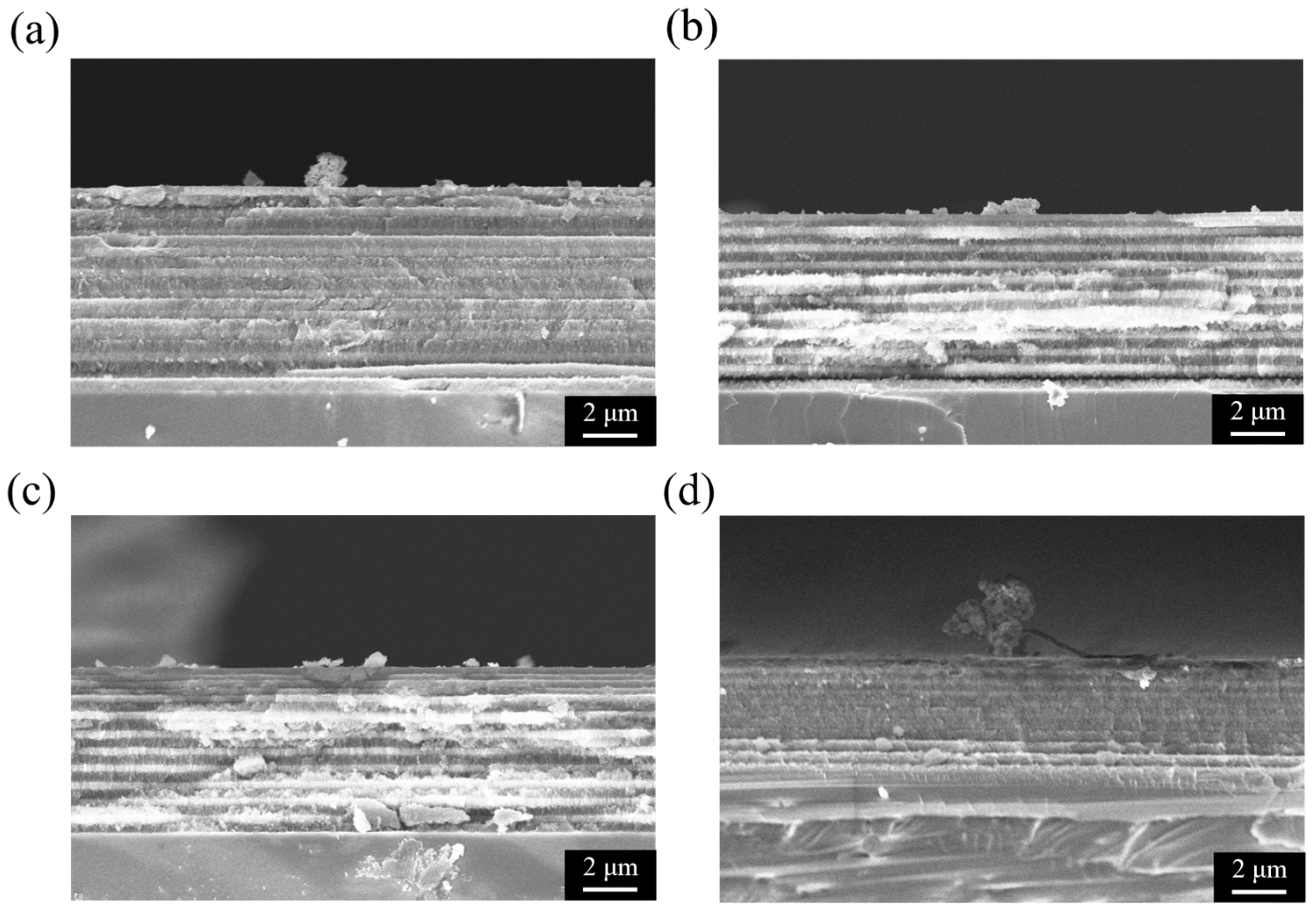 3.2. Cross-Sectional Analysis of Porous Silicon Bragg Reflectors