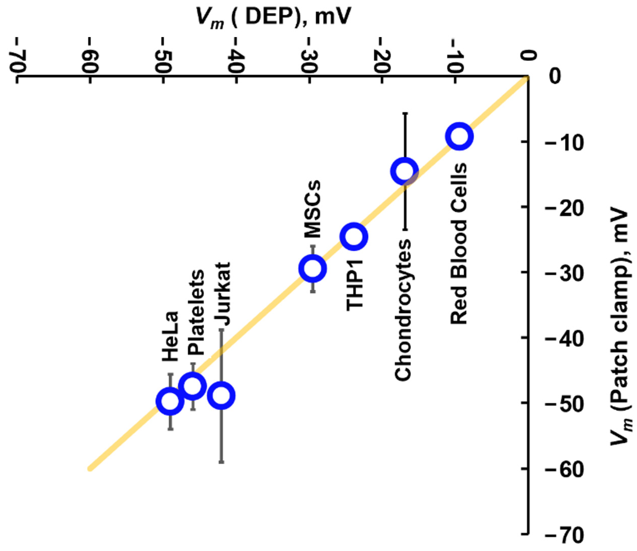 - Hughes, M.P.; Clarke, K.S.P.; Hoque, R.; Griffiths, O.V.; Kruchek, E.J.; Lewis, R.; Labeed, F.H. Label-free, non-contact estimation of resting membrane potential using dielectrophoresis. Sci. Rep. 2024, 14, 18477. [Google Scholar] [CrossRef]