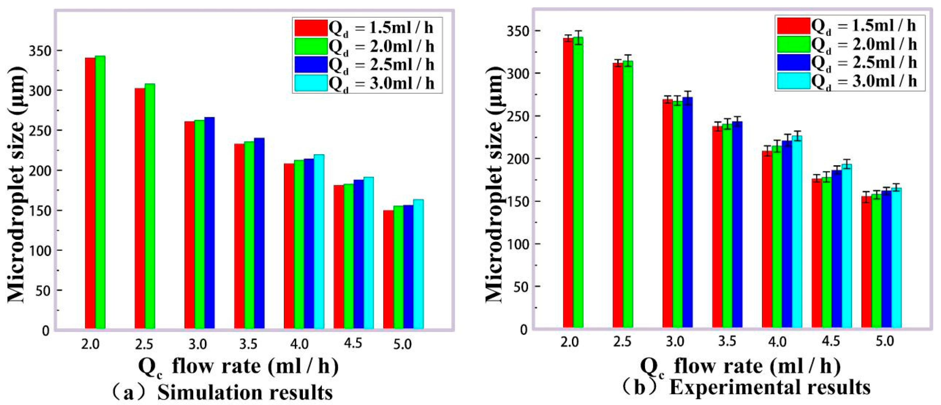 | (mL/h) | (mL/h) | Mean Size by Imaging Method ) | Mean Size by Our Results ) | Maximum Error (%) for 2000 Samples |