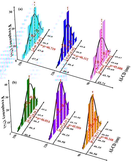 Wavelength and bandwidth stability constitute critical attributes of pulsed lasers. Owing to the pulse emission nature of excimer lasers, consistency between laser pulses cannot be guaranteed. Research indicates [23,24] that fluctuations in laser output parameters (e.g., wavelength and bandwidth) predominantly follow a normal distribution. Consequently, parameters of the normal distribution can characterize light source system stability. Assuming wavelength and bandwidth stability variations adhere to independent normal distributions: .