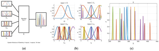 The tuned FIS for E response.; (a) FIS structure; (b) inputs membership; (c) output membership functions.