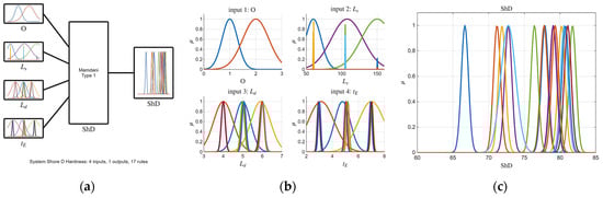 The tuned FIS for ShD response; (a) FIS structure; (b) inputs membership; (c) output membership functions.