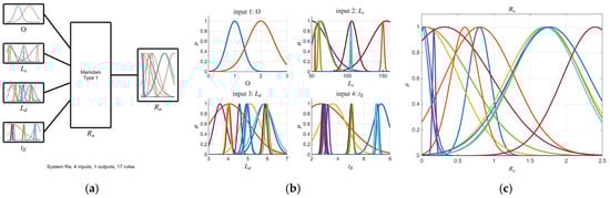 The custom MLFE function was developed to adapt the standard MLFE algorithm [30,34]. It iteratively builds an initial Mamdani fuzzy rule base from the experimental training data (, where is the parameters’ vector and is the response vector) with several key modifications, detailed in the following algorithm.