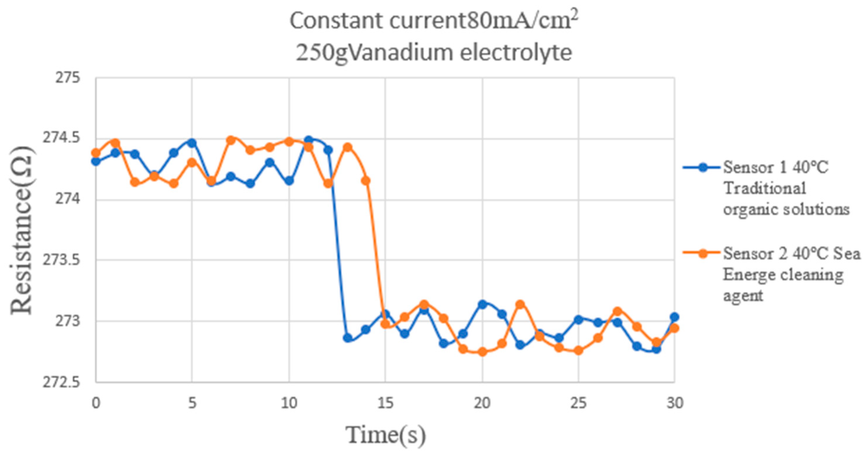 Comparison of Environmentally Friendly Cleaning Agents and Organic Solvent Cleaning Processes in the Fabrication of Flexible Nine-in-One Microsensors and Their Application in Hydrogen/Vanadium Redox Flow Batteries