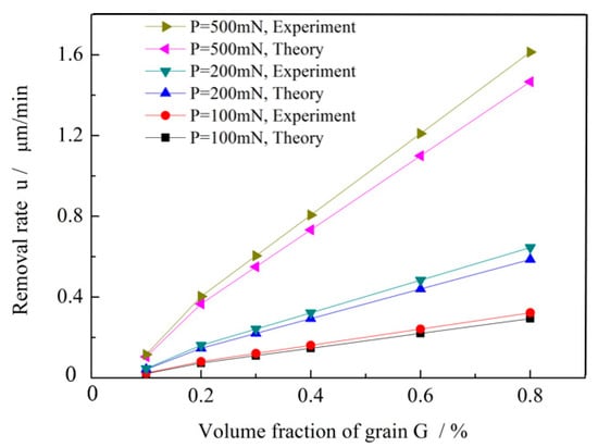 For conventional micro-powder grinding wheels, a reduction in particle size increases the specific surface area and surface energy, which promotes agglomeration. Consequently, the effective abrasive distribution density is generally below 12.5%. In contrast, the grainless iron-based grinding wheel (W0) eliminates abrasive agglomeration, enabling an effective abrasive density exceeding 80%. This structural advantage results in a significantly higher material removal rate. The experiment employed a material removal rate characterisation method based on thickness monitoring, calculating the removal rate by measuring the thickness change of glass specimens before and after polishing.