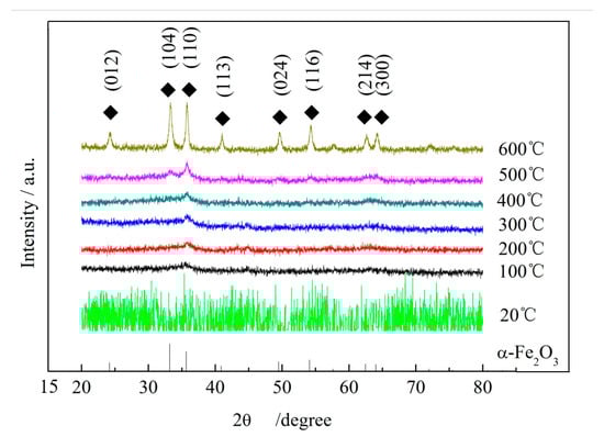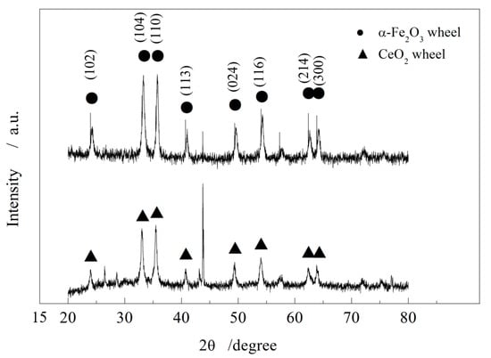 During grinding, substantial heat accumulates in the grinding zone, producing elevated temperatures. At these temperatures, adsorbed and lattice water in the oxide film are first removed. Subsequently, γ-Fe2O3 forms at approximately 300 °C, and with further heating to 600 °C, γ-Fe2O3 transforms into α-Fe2O3, as expressed in formula (7).