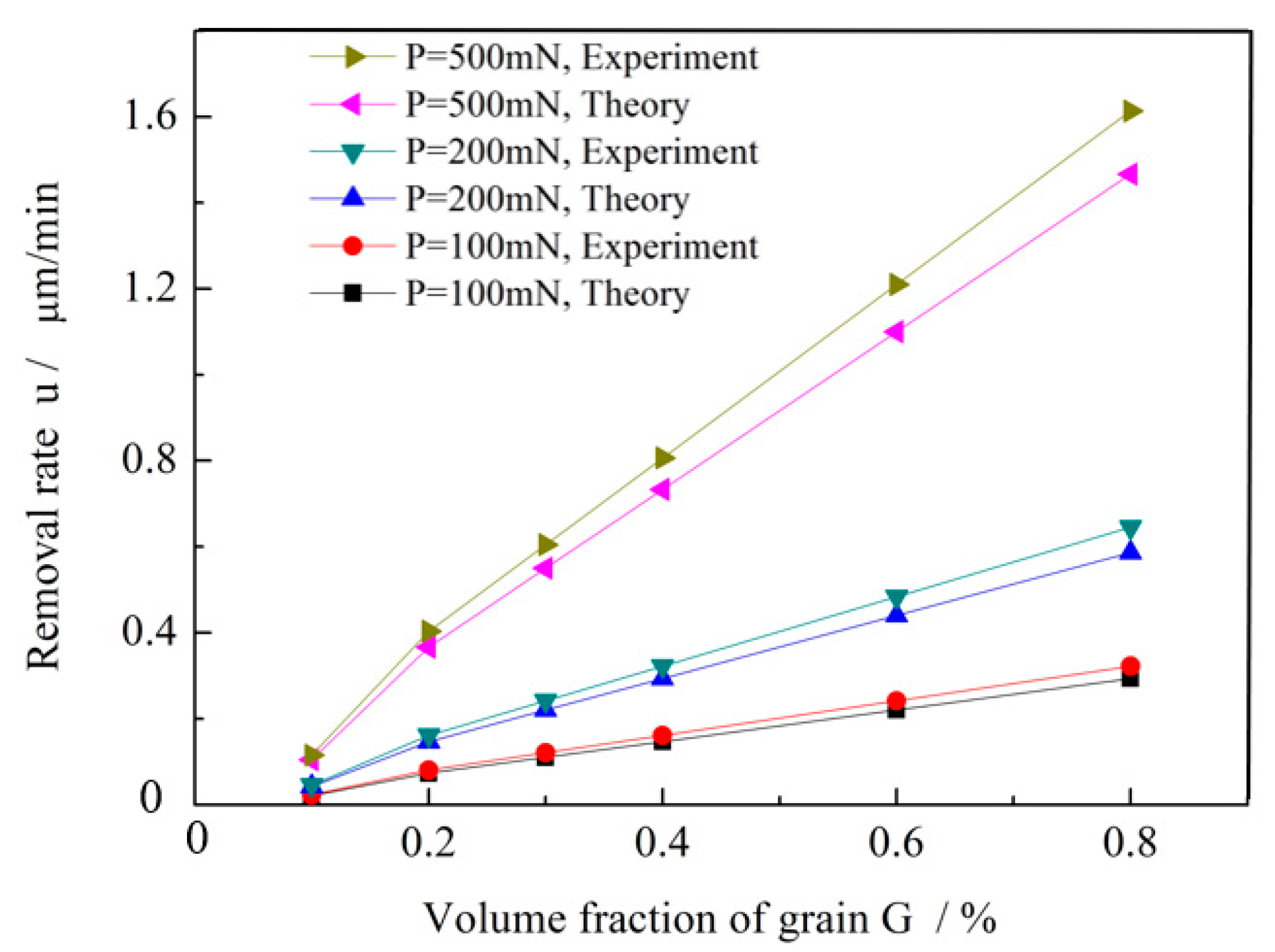 - Polishing efficiency: In super-fine polishing at low pressures, the process achieves high precision but low efficiency. With increasing polishing pressure, the material removal rate rises rapidly, reaching a maximum of 1.6 μm/min—nearly four times higher than that of the conventional CeO2 grinding wheel.