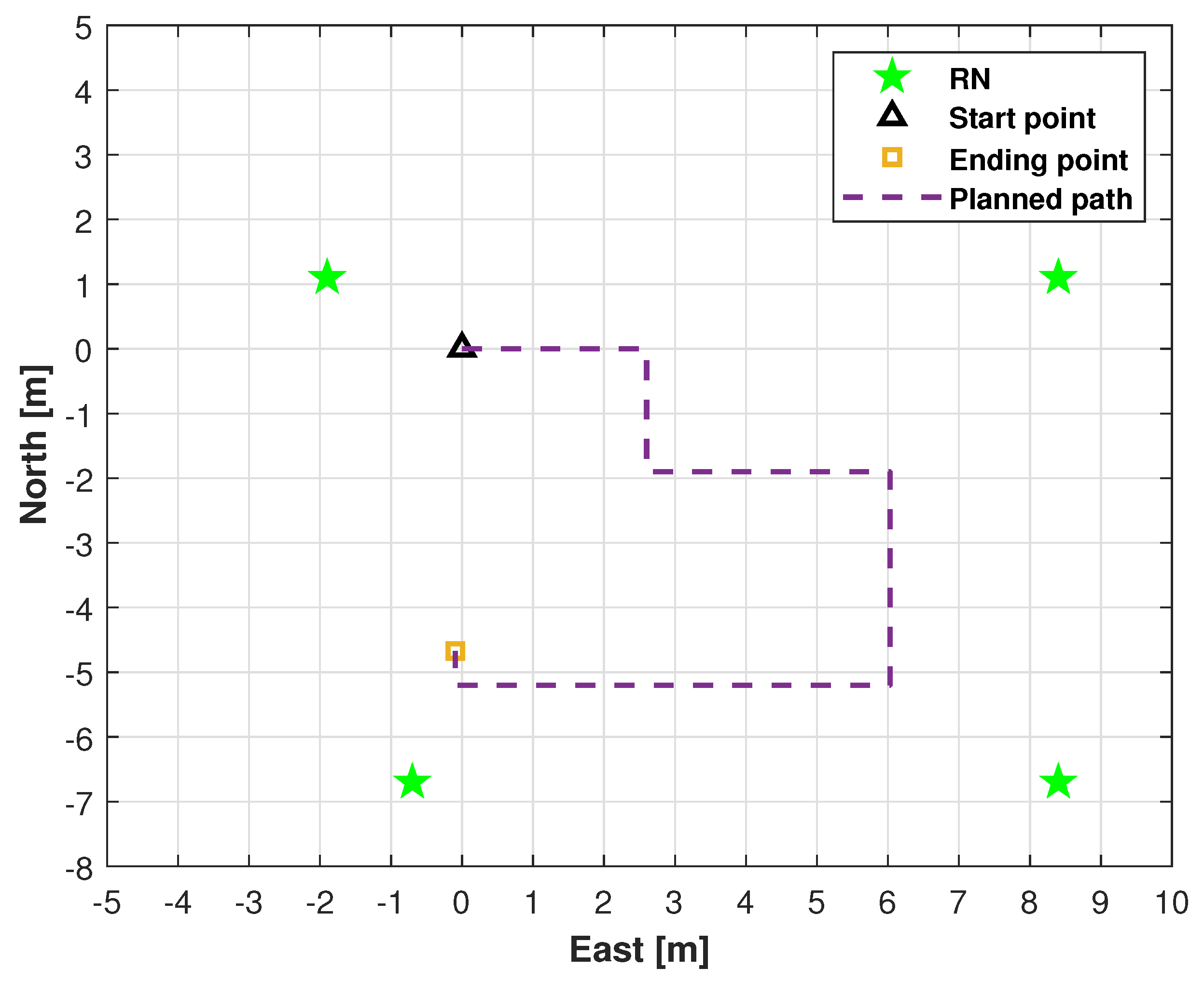 - Juston, M.; Gupta, S.; Mathur, S.; Norris, W.R.; Nottage, D.; Soylemezoglu, A. Robust Error State Sage-Husa Adaptive Kalman Filter for UWB Localization. IEEE Sens. J. 2025, 25, 16034–16049. [Google Scholar] [CrossRef]