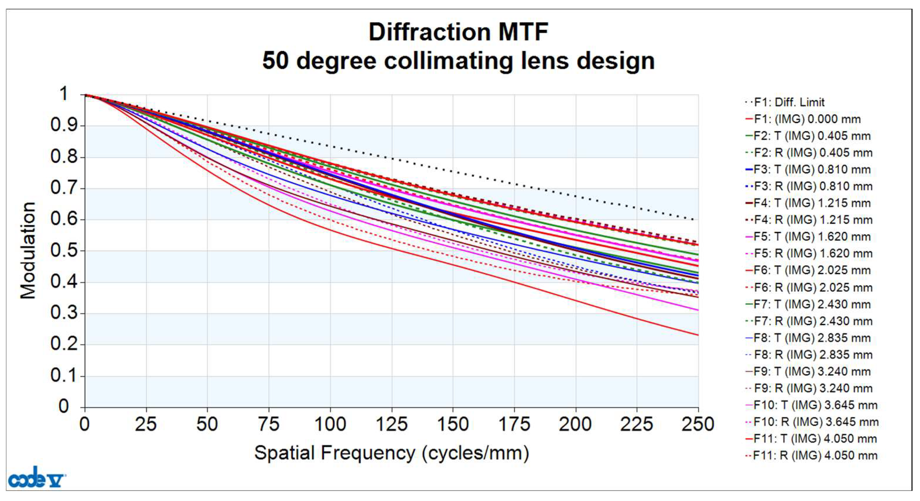 The data in brackets above relates to the FOV of the 50° collimating lens design in this article.