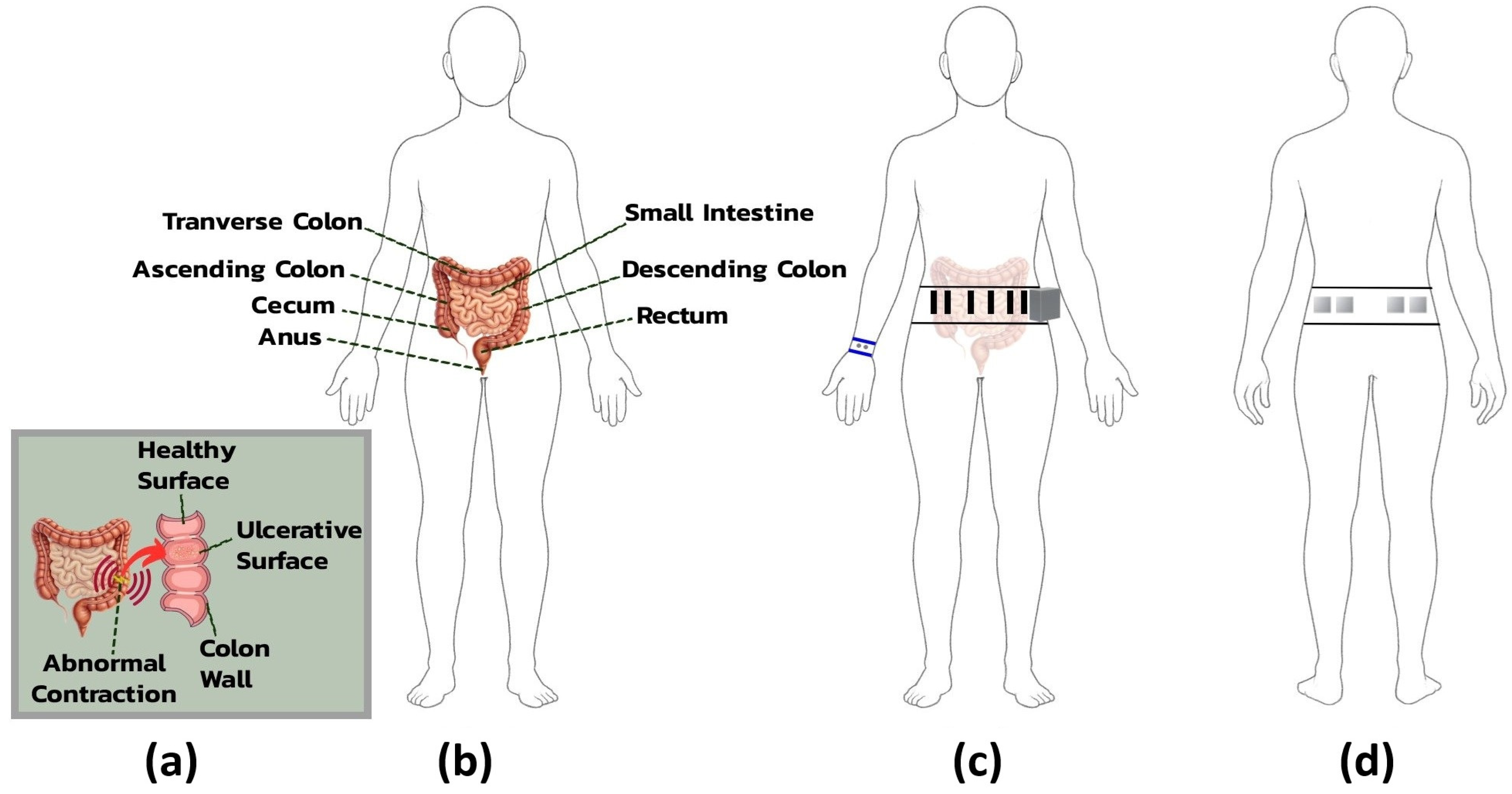 Figure 4 provides an anatomical overview of IBS-related abdominal structures and the rationale for electrode placement on the belt and wristband.