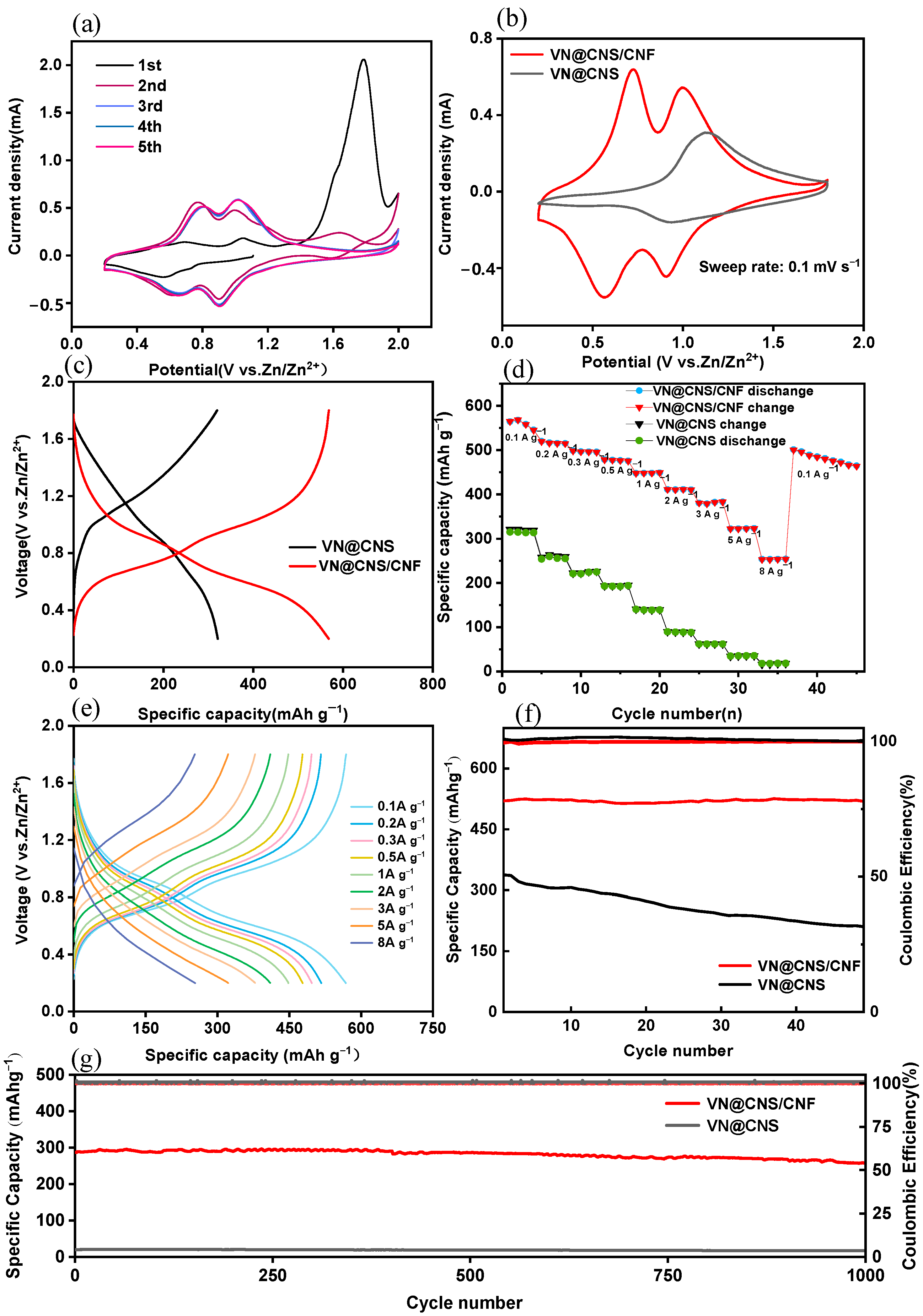 Carbon NanoFiber-Integrated VN@CNS Multilevel Architectures for High-Performance Zinc-Ion Batteries