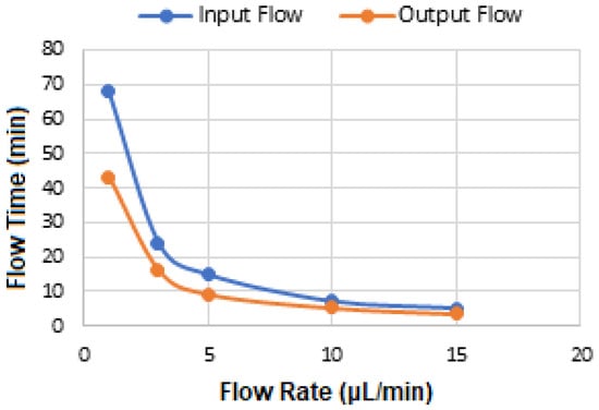 Variation in Flow time versus flow rate of dye in a microfluidic channel.