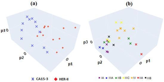 (a) Biomarker discrimination based on the type and (b) the cancer stage.