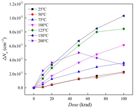 - Fleetwood, D.M. Effects of bias and temperature on interface-trap annealing in MOS and linear bipolar devices. IEEE Trans. Nucl. Sci. 2022, 69, 587–608. [Google Scholar] [CrossRef]