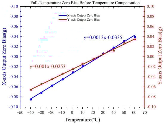 where denotes the change in the accelerometer’s zero-bias output and represents the corresponding temperature difference.