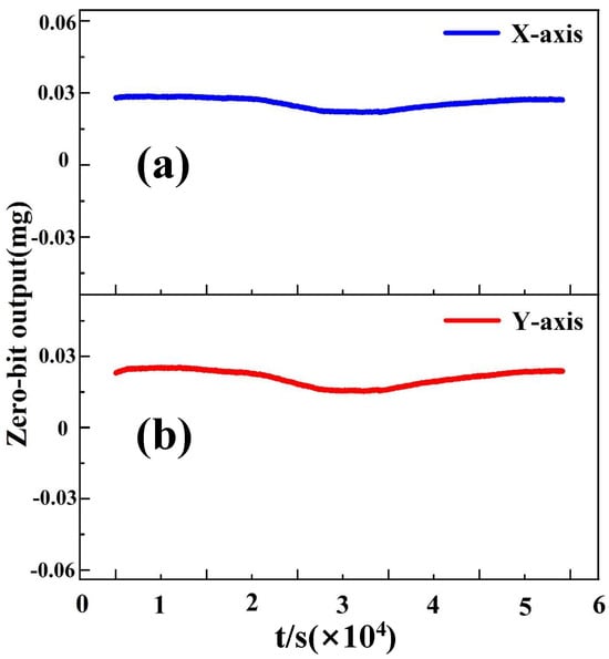 The stable output of the accelerometer at each sampling point within the full temperature range after temperature compensation: (a) X-axis; (b) Y-axis.