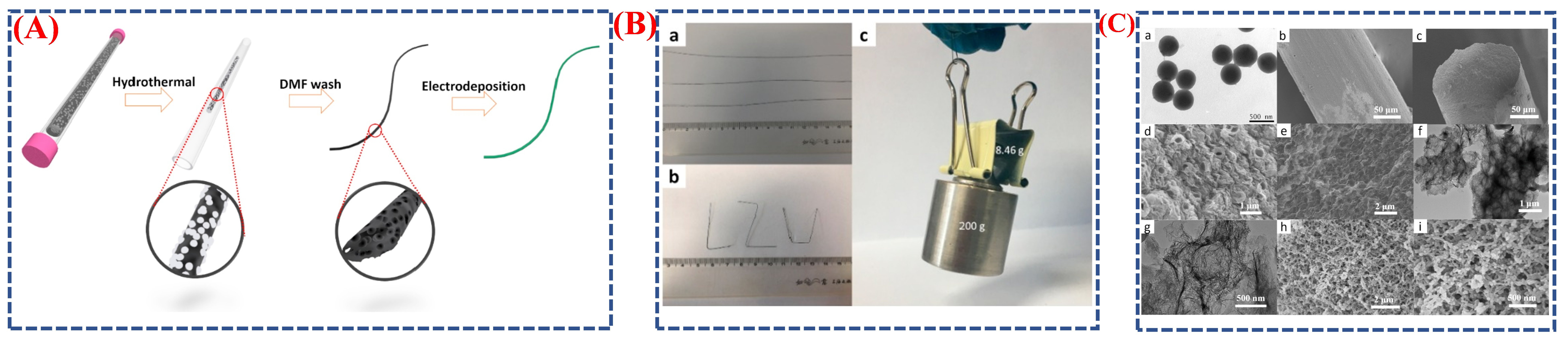 - Liu, D.; Liu, J.; Wang, Q.; Du, P.; Wei, W.; Liu, P. PANI coated microporous graphene fiber capable of subjecting to external mechanical deformation for high performance flexible supercapacitors. Carbon 2019, 143, 147–153. [Google Scholar] [CrossRef]