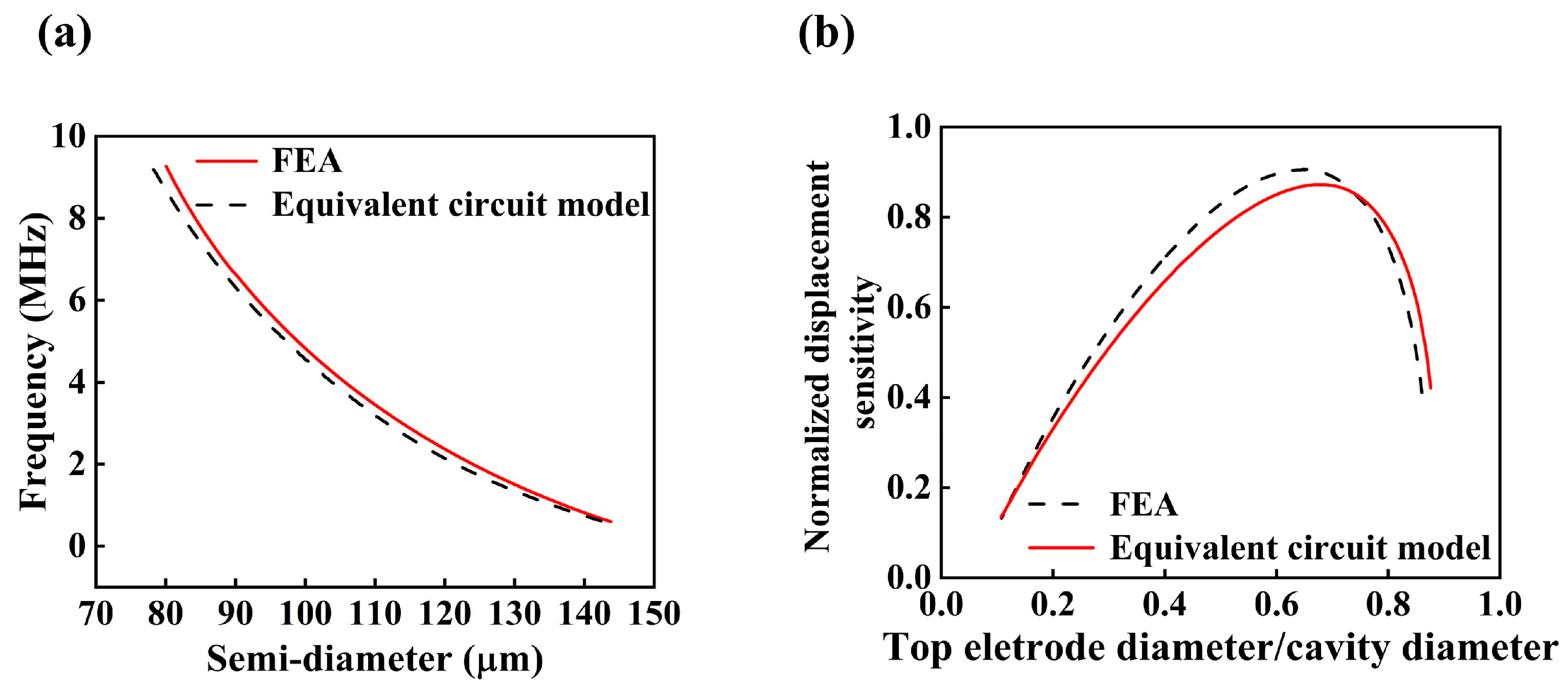 - Liu, W.; He, L.; Wang, X.; Zhou, J.; Xu, W.; Smagin, N.; Toubal, M.; Yu, H.; Gu, Y.; Xu, J. 3D FEM analysis of high-frequency AlN-based PMUT arrays on cavity SOI. Sensors 2019, 19, 4450. [Google Scholar] [CrossRef]