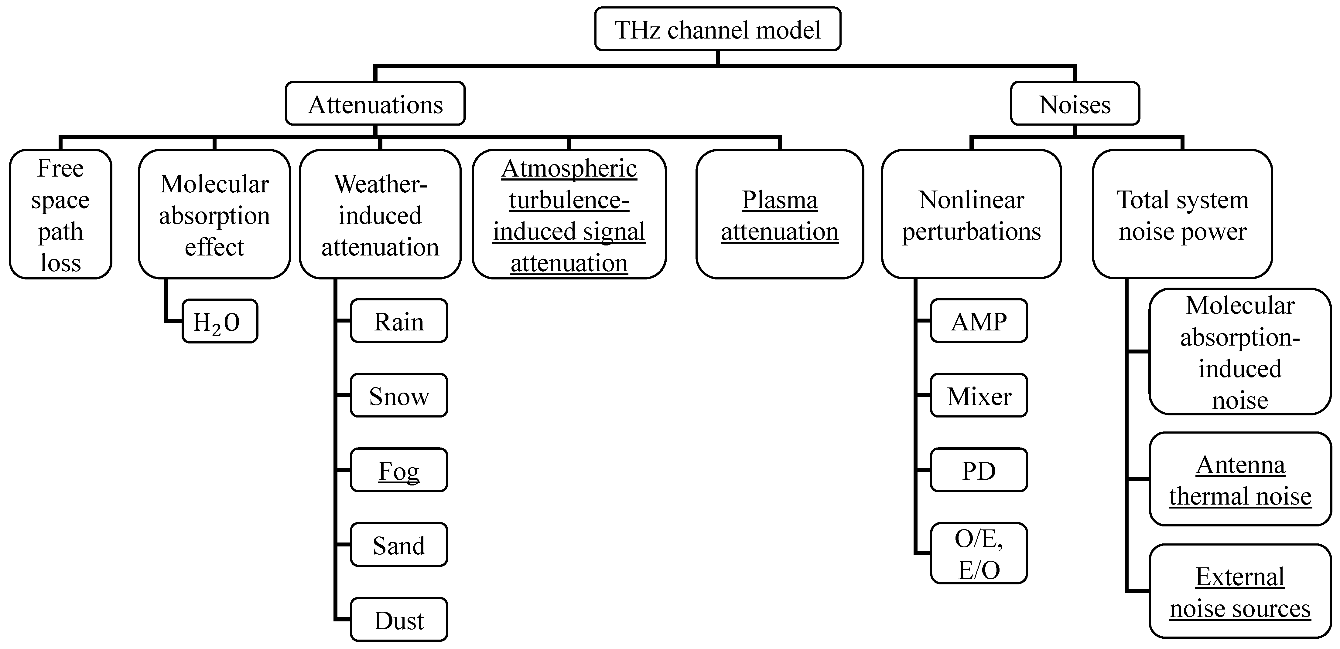 | Channel Modeling & Attenuation | Lack of unified model; THz molecular absorption; FSO turbulence | Develop ML-based unified channel models for dynamic adaptation |