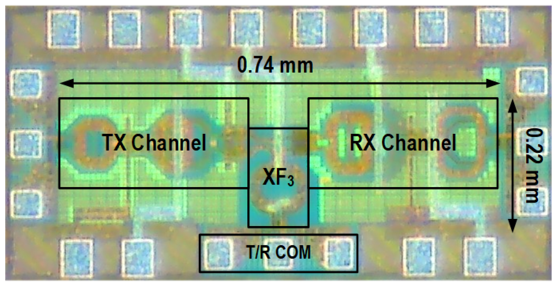 17. Zeng, D.; Zhu, H.; Shen, G.; Cai, Q.; Gao, O.; Che, W.; Xue, Q. A compact 24–30-GHz GaN front-end module with coupled-resonator-based transmit/receive wwitch for 5G millimeter-wave applications. IEEE Trans. Microw. Theory Tech. 2025, 73, 1938–1950. [Google Scholar] [CrossRef]