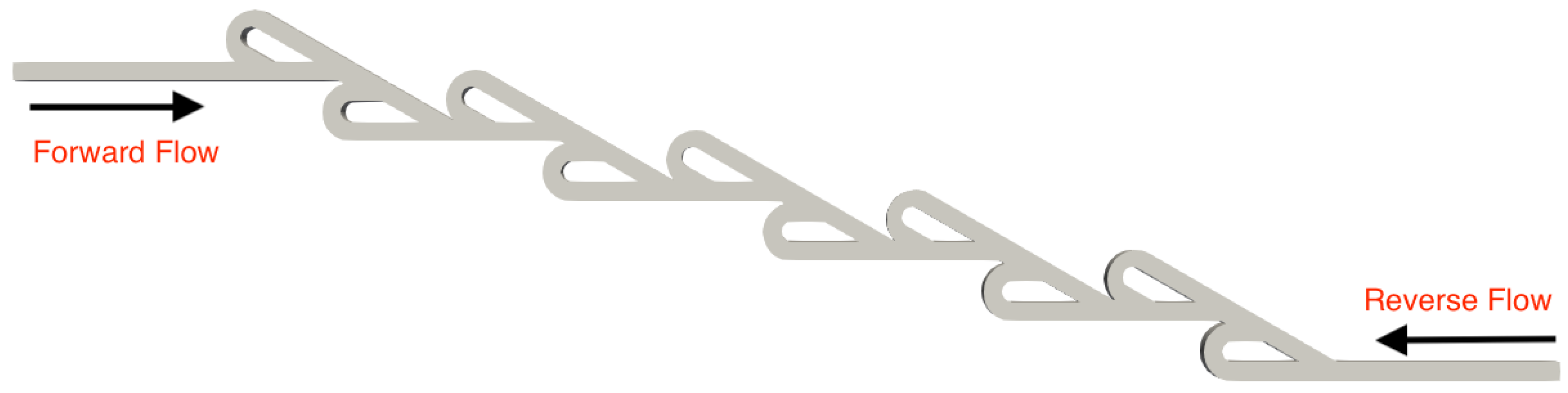 8]. Although a common characteristic of the above applications is that they involve microfluidic devices, the Tesla valve could find applicability in macroscale applications, such as in the marine [