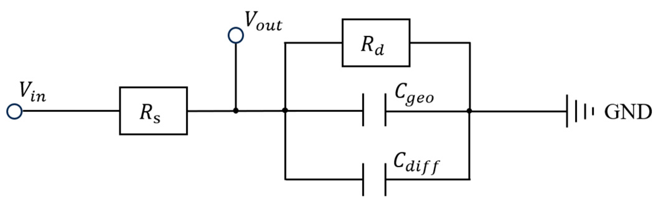 Figure 7. By incorporating bias-dependent physical parameters, the model reveals the intrinsic mechanisms governing the device’s bandwidth. The core of the model consists of a series resistor